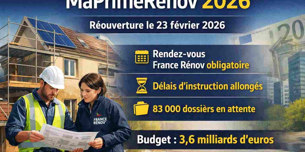 Après plus d’un an de suspension faute de crédits suffisants, MaPrimeRénov’ rouvre officiellement le 23 février 2026. La promulgation du budget de l’État le 10 février a permis de débloquer une enveloppe de 3,6 milliards d’euros, marquant le redémarrage d’un dispositif devenu central dans la politique de transition énergétique du parc immobilier français.